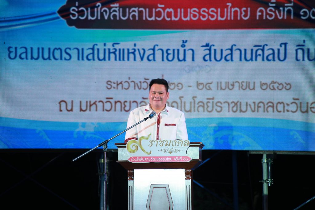 และกิจกรรม 9 ราชมงคลร่วมสืบสานวัฒนธรรมไทย ครั้งที่ 13 จัดขึ้นระหว่างวันที่ 21-24 เมษายน 2566 ณ ตลาดน้ำห้วยสุครีพ ตำบลบางพระ อำเภอศรีราชา จังหวัดชลบุรี โดยมี รศ.ดร.ฤกษ์ชัย ฟูประทีปศิริ อธิการบดีเป็นประธานกล่าต้อนรับผู้เข้าร่วมงาน ผศ.ดร.คณาธิป จิระสัญญาณสกุล รองอธิการบดี กล่าวรายงาน และได้รับเกียรติจากคณะผู้บริหารจากมหาวิทยาลัยเทคโนโลยีราชมงคลทั้ง 9 แห่ง เข้าร่วมในพิธีเปิดดังกล่าวร่วมกับคณาจารย์ บุคลากร และทูตวัฒนธรรม รวมทั้งผู้บริหารจากหน่วยงานภายนอก ซึ่งในพิธีเปิดดังกล่าวเป็นการเปิดเวทีให้กับนักศึกษาทูตวัฒนธรรม 9 จากมหาวิทยาลัยเทคโนโลยีราชมงคลตะวันออก ทั่วประเทศได้มีโอกาสนำเสนอทักษะความสามารถทางด้านการแสดงศิลปวัฒนธรรม นาฏศิลป์ ทั้งแบบดั้งเดิมและร่วมสมัย เผยแพร่ ผลงานการสืบสานรักษาวัฒนธรรมไทย ให้กับผู้เข้าร่วมงานและประชาชนทั่วไป ได้รับชมผ่านทางเวทีกลางและการถ่ายทอดผ่านระบบออนไลน์
