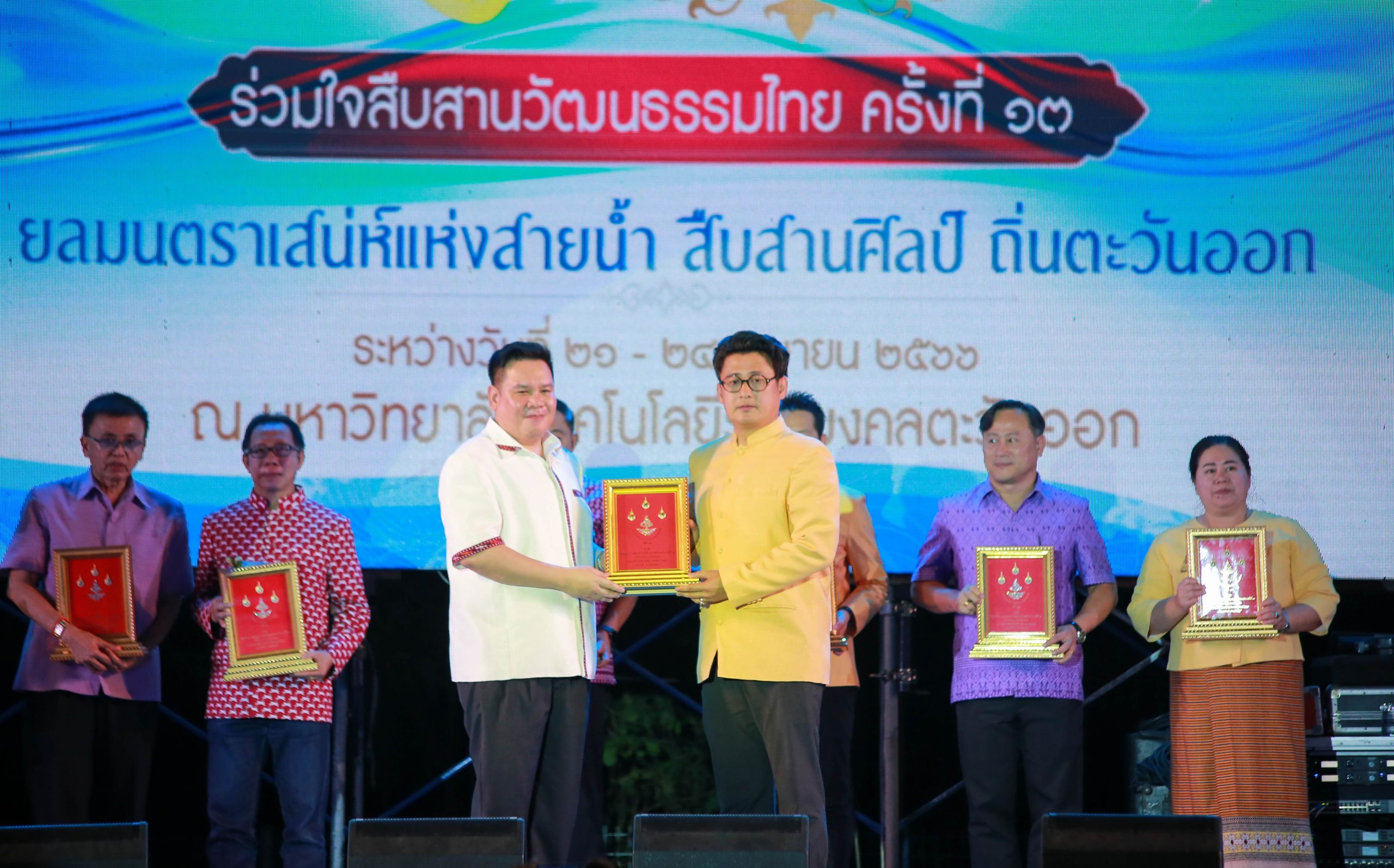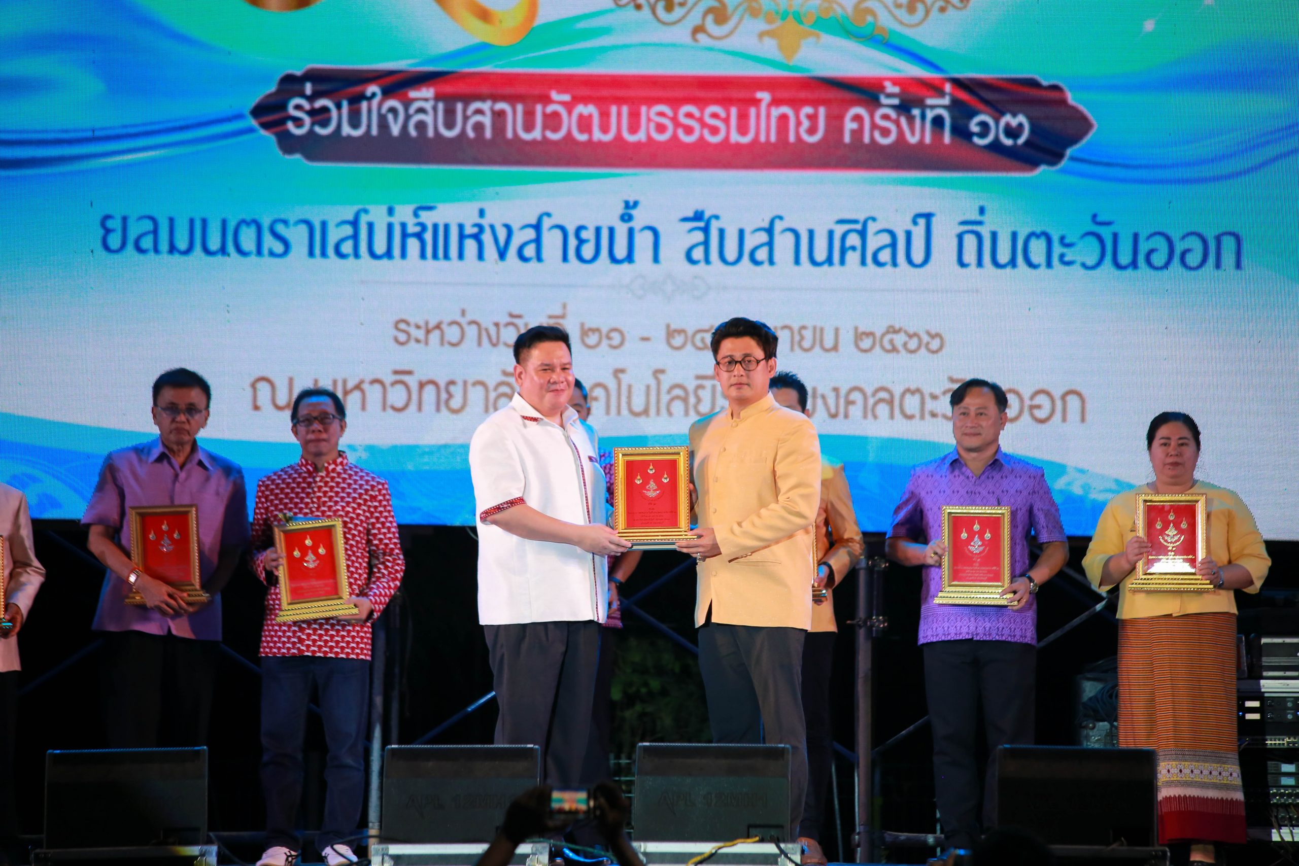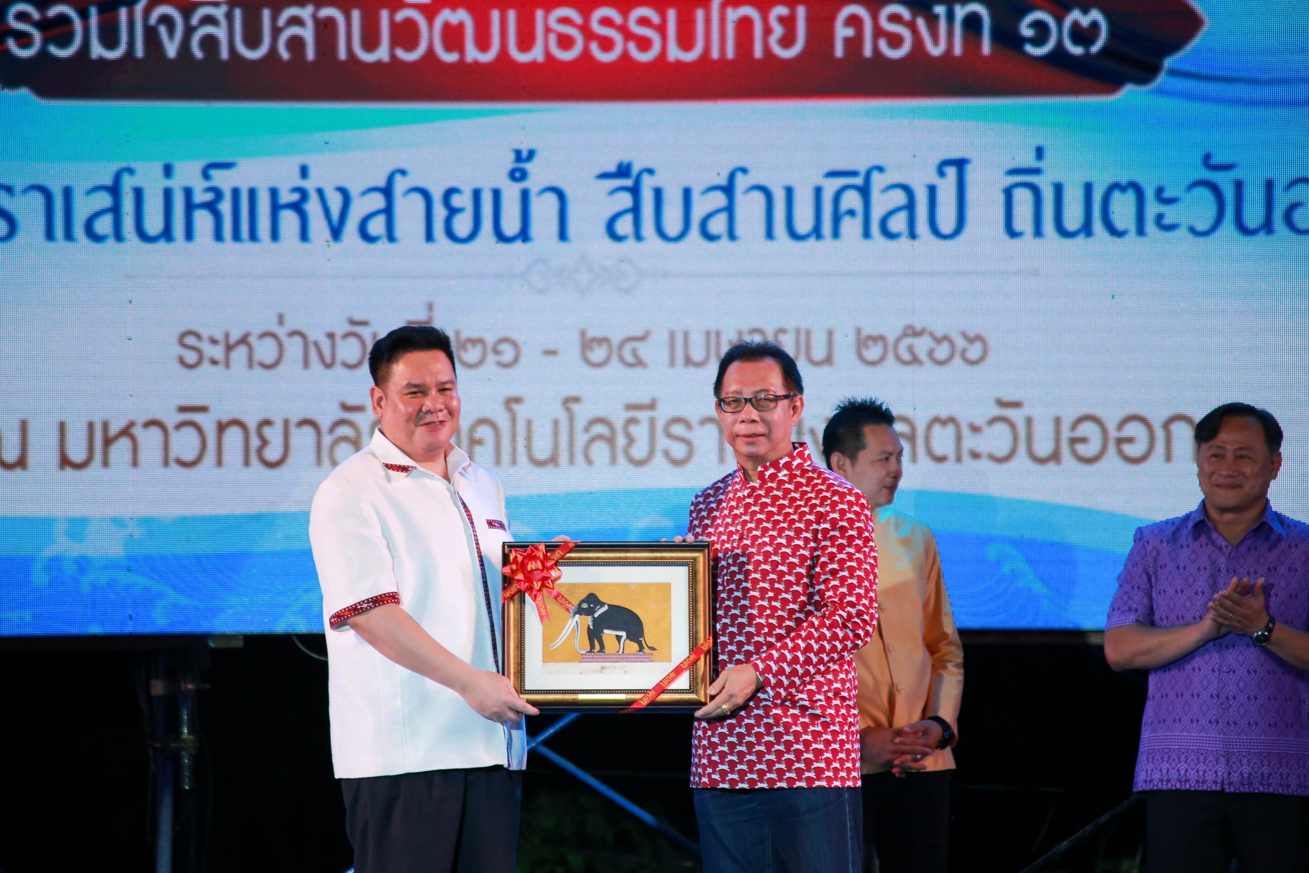 และกิจกรรม 9 ราชมงคลร่วมสืบสานวัฒนธรรมไทย ครั้งที่ 13 จัดขึ้นระหว่างวันที่ 21-24 เมษายน 2566 ณ ตลาดน้ำห้วยสุครีพ ตำบลบางพระ อำเภอศรีราชา จังหวัดชลบุรี โดยมี รศ.ดร.ฤกษ์ชัย ฟูประทีปศิริ อธิการบดีเป็นประธานกล่าต้อนรับผู้เข้าร่วมงาน ผศ.ดร.คณาธิป จิระสัญญาณสกุล รองอธิการบดี กล่าวรายงาน และได้รับเกียรติจากคณะผู้บริหารจากมหาวิทยาลัยเทคโนโลยีราชมงคลทั้ง 9 แห่ง เข้าร่วมในพิธีเปิดดังกล่าวร่วมกับคณาจารย์ บุคลากร และทูตวัฒนธรรม รวมทั้งผู้บริหารจากหน่วยงานภายนอก ซึ่งในพิธีเปิดดังกล่าวเป็นการเปิดเวทีให้กับนักศึกษาทูตวัฒนธรรม 9 จากมหาวิทยาลัยเทคโนโลยีราชมงคลตะวันออก ทั่วประเทศได้มีโอกาสนำเสนอทักษะความสามารถทางด้านการแสดงศิลปวัฒนธรรม นาฏศิลป์ ทั้งแบบดั้งเดิมและร่วมสมัย เผยแพร่ ผลงานการสืบสานรักษาวัฒนธรรมไทย ให้กับผู้เข้าร่วมงานและประชาชนทั่วไป ได้รับชมผ่านทางเวทีกลางและการถ่ายทอดผ่านระบบออนไลน์